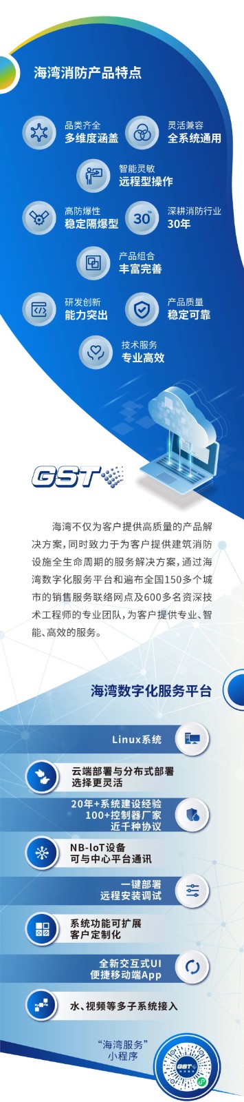 海灣不僅為客戶提供高質(zhì)量的產(chǎn)品解決方案,同時(shí)致力于為客戶提供建筑消防設(shè)施全生命周期的服務(wù)解決方案,通過(guò)海灣數(shù)字化服務(wù)平臺(tái)和遍布全國(guó)150多個(gè)城市的銷售服務(wù)聯(lián)絡(luò)網(wǎng)點(diǎn)及600多名 技術(shù)工程師的專業(yè)團(tuán)隊(duì),為客戶提供專業(yè)、智能、高效的服務(wù)。
